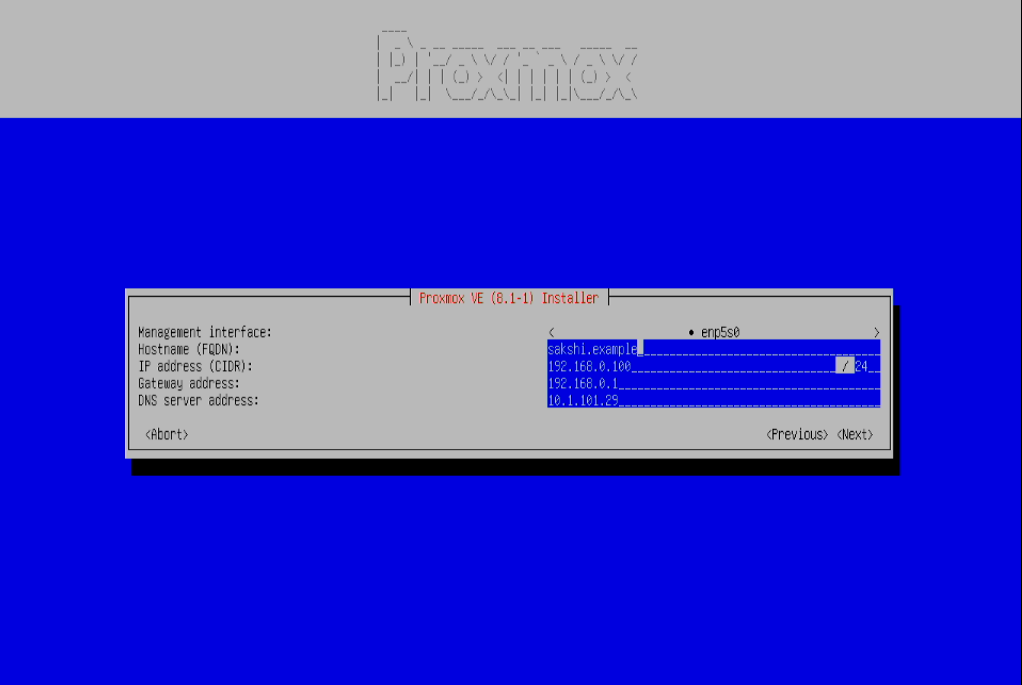 - Set up the network interface. If you’ve already connected the device to a router with DHCP, the installer will automatically detect your network details. If you’re not using DHCP or haven’t connected the device yet, please connect it now and fill in the required details.