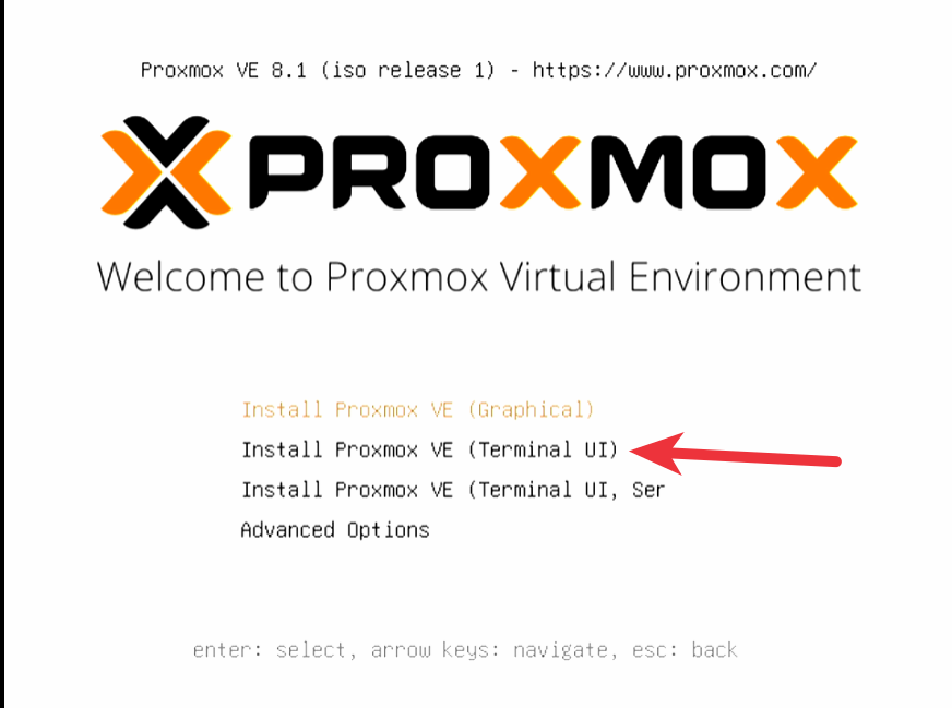 - Install Proxmox VE (Graphical) option does not display button on some displays. (Displays with non-standard resolutions for example 1366×768 have this problem). Terminal UI tends to work on all displays and resolutions, So we will choose to install using Terminal UI.
